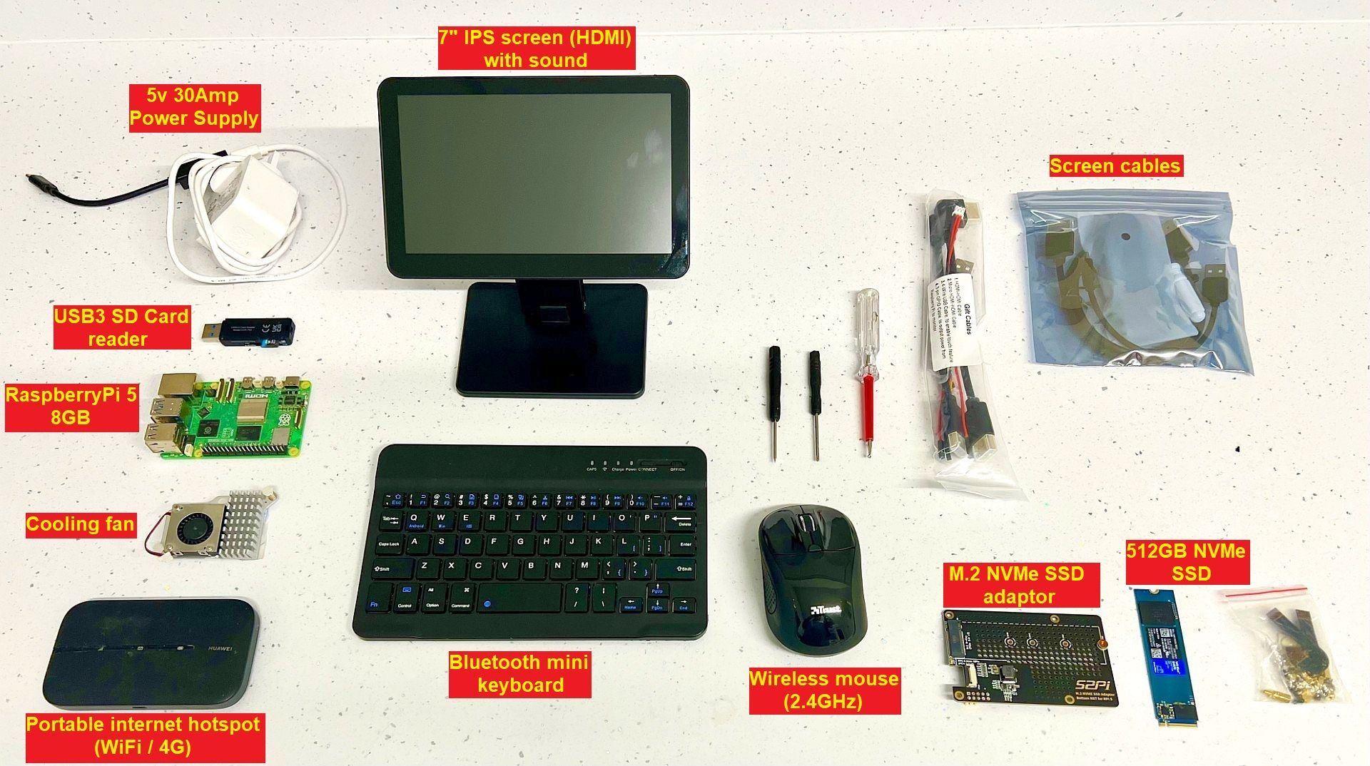 So, this tiny computer is built to my own specifications, these are the components I chose.